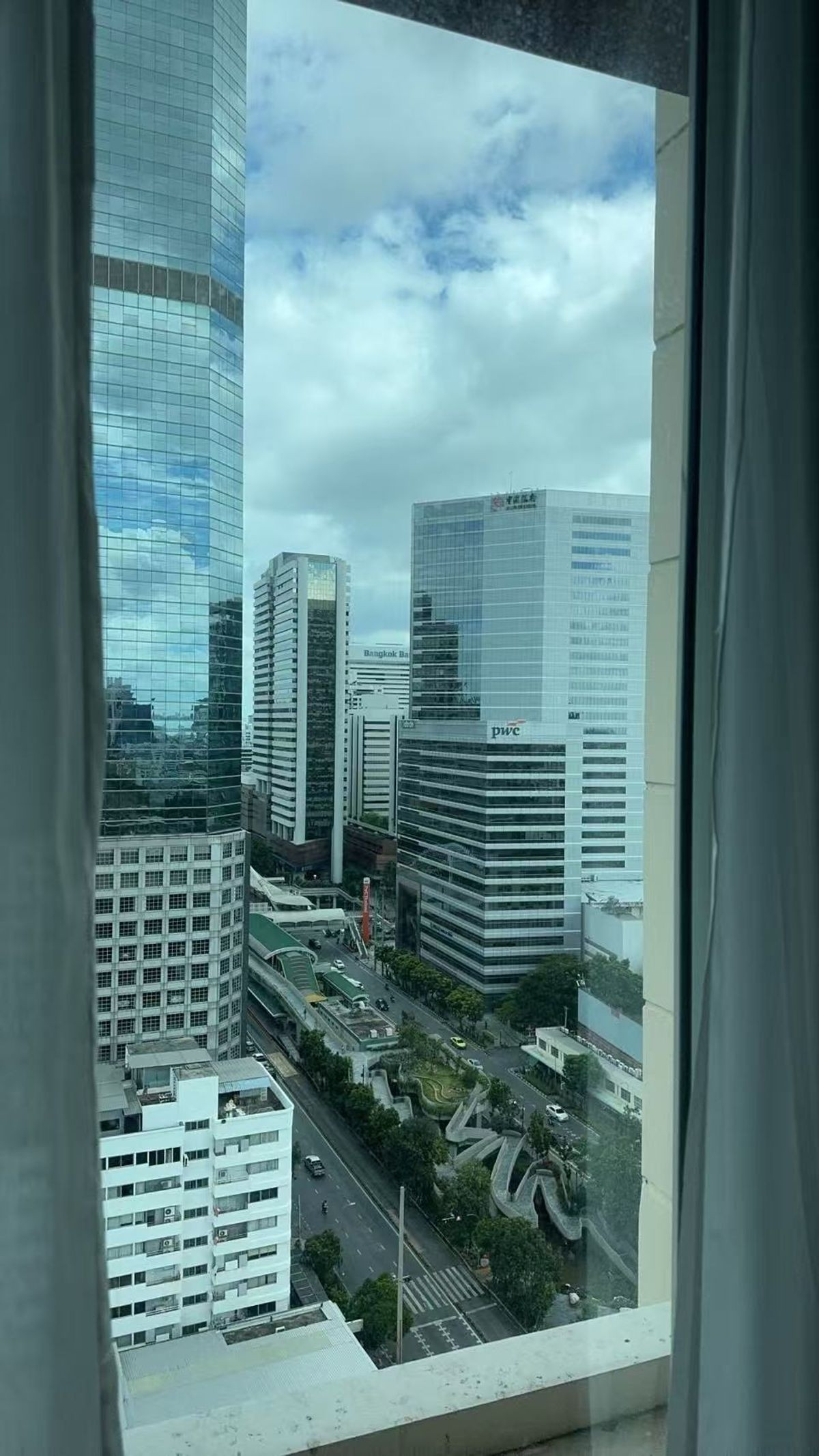 Air conditioning, kitchen, bathtub, microwave, and balcony. Swimming pool and fountain.
